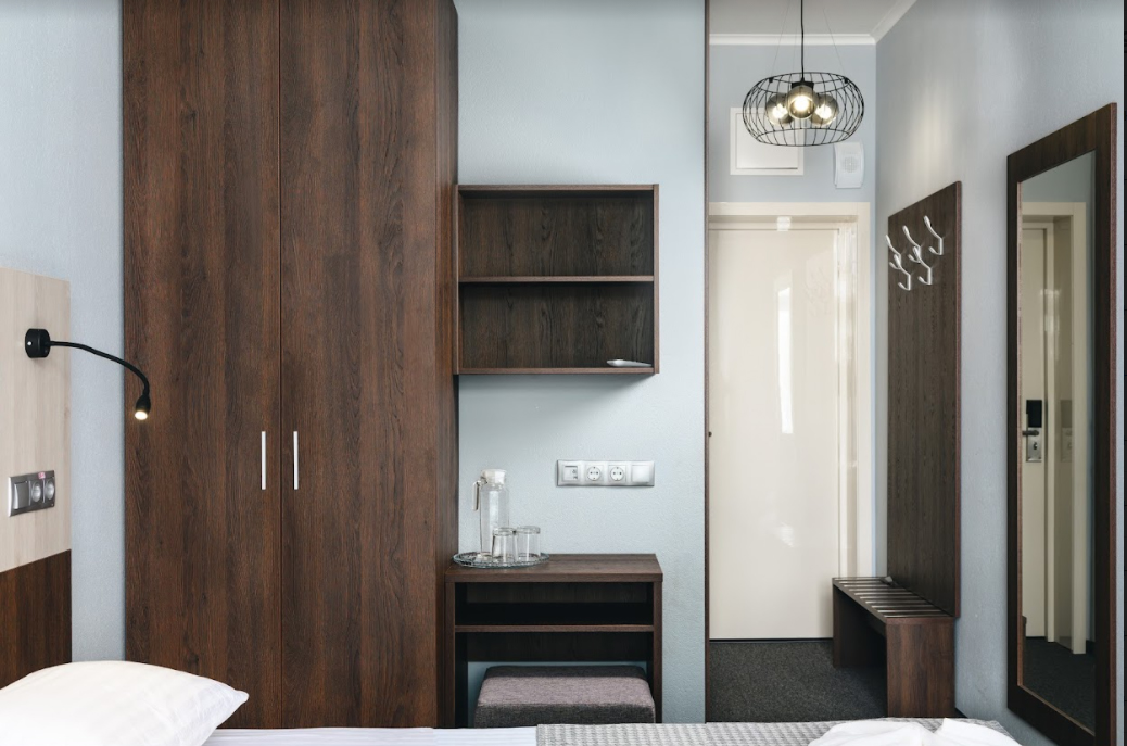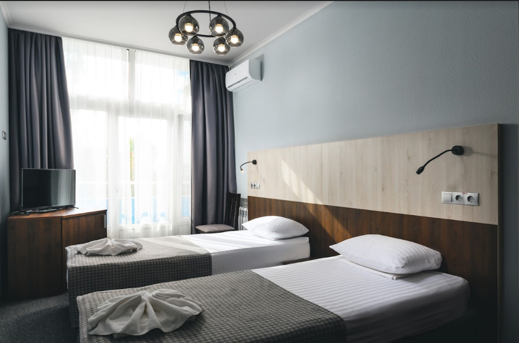 Площадь номера - 18 кв.м. 2 осн. места. 1 доп. место. Балкон. Мебель: зеркало, кровати односпальные, прикроватные тумбочки, столик журнальный, стулья, шкаф. Оборудование: кондиционер, сейф, телевизор, холодильник. Санузел. Сервис: смена полотенец (1 раз в 3 дня), смена постельного белья (1 раз в 3 дня), уборка номера (ежедневно).